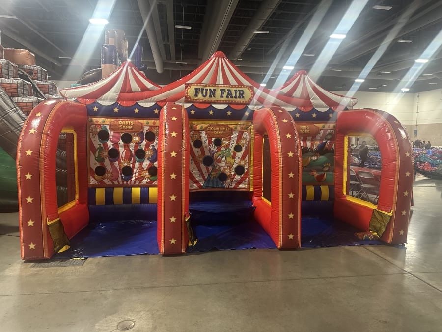 Interactive game rentals 3 in 1 Carnival Game in Plano, Allen, Wylie, Sachse, Princenton, Murphy, Anna, Melissa, Frisco, Prosper, Celina, Little Elm, The Colony, Flower Mound, Carrollton, Mesquite, Garland, Dallas, Rowlett delivers three classic carnival challenges in one compact unit. Measurements: L 7' x W 17' x H 9.5'. Perfect for parties, school fairs, company picnics, and community events. 🚚🎉