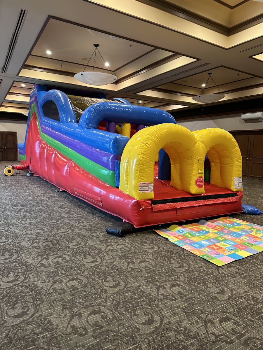 Race away in our 45 feet long obstacle course. Make your way uphill, squeezing through tunnels and pop up tubes. Finishing by a climbing wall and down a double slide. First one to make it across WINS! Are you up for the challenge?