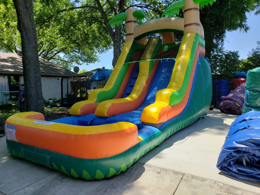 Are you having a birthday for your little one? A graduation party, family reunion, wedding or any kind of get together event in the Collin/Dallas County? We are located in Plano but we also deliver to Frisco, Allen, Mckinney, Richardson, Garland, The Colony, Wylie, Murphy, Sachse, Prosper, Little Elm, Carrollton, Lewisville, Flower Mound and many more. We provide a clean and sanitized bounce house and water slides for your event. This unit is fun for most ages.