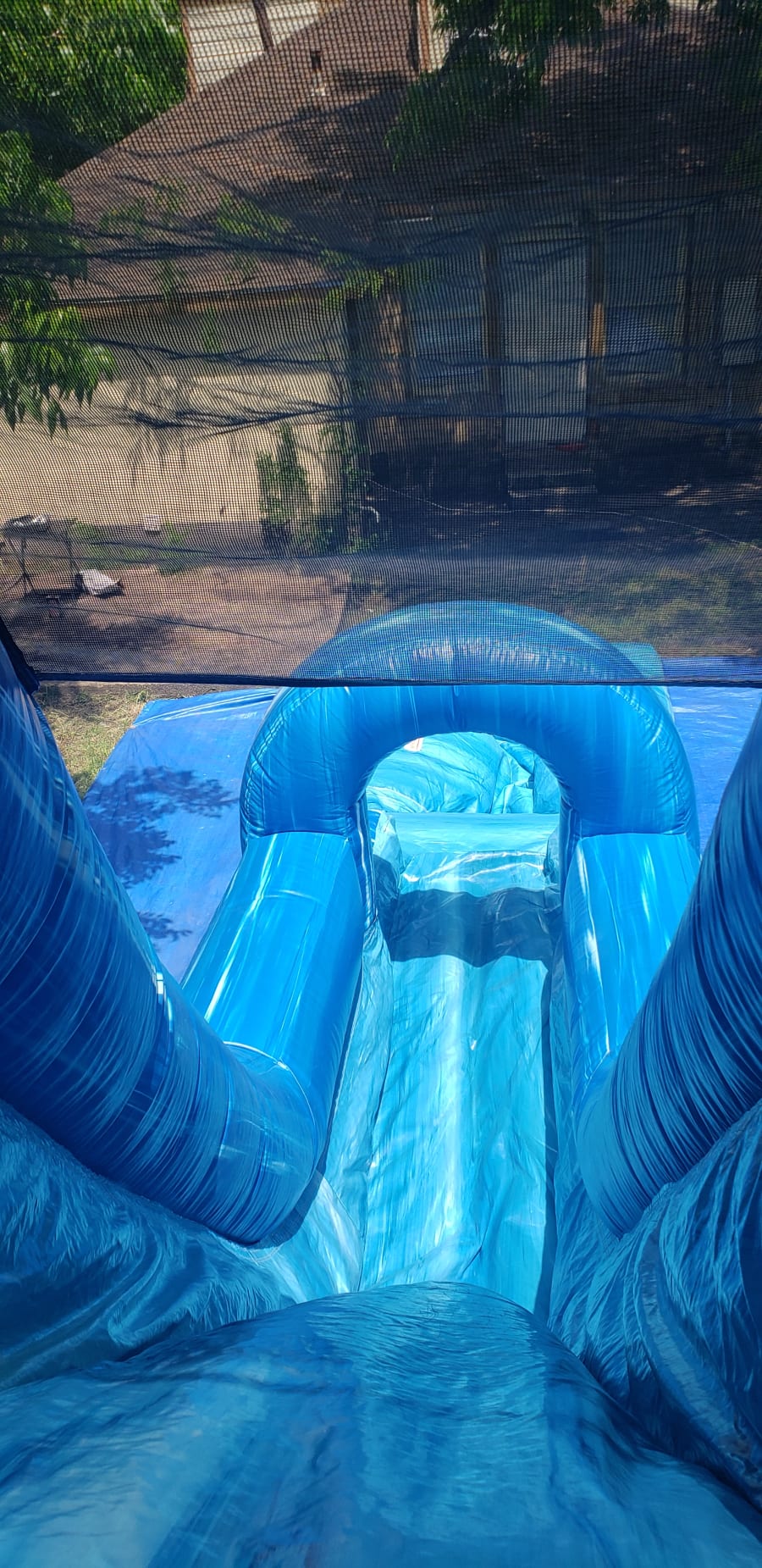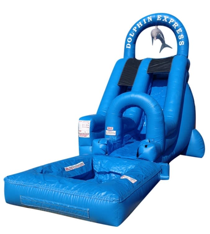 Our Dolphin Express Waterslide is 18ft tall and has a pool. The Dolphin Express is a slimmed down single lane slide that the kids will love. Beat this Texas heat with a waterslide.