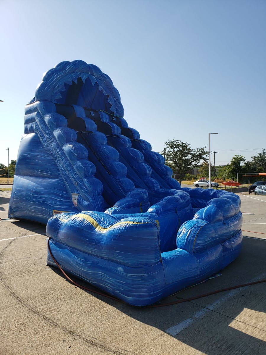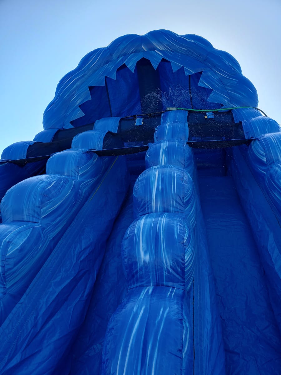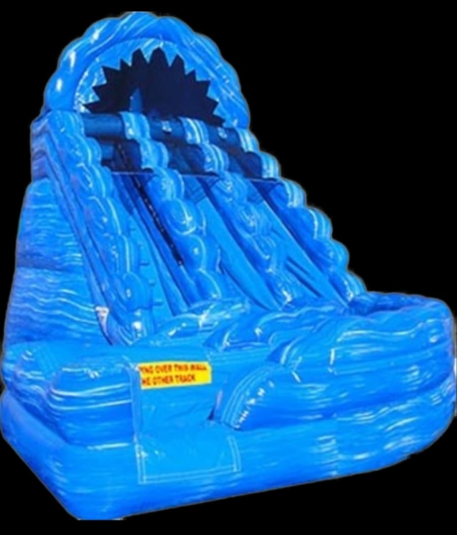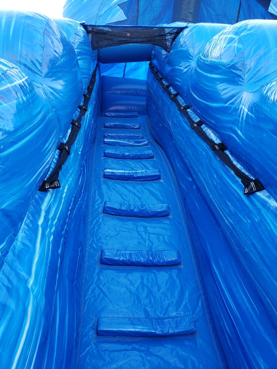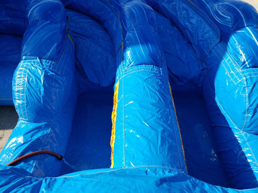 The impressive Ragin Rapids Water Slide is a dual wet or dry slide guaranteed to add tons of excitement and acceleration to any event. Great for promoting friendly competition or group challenges, kids can climb up and choose a left- or right-sided slick slide, for a fast-track ride to the water pool at bottom with a safety stop. Hooded safety on top makes sure riders slide down properly. The bright and colorful blue theme fits into any décor, sure to attract everyone for a thrill-filling day, and keep the kids sliding! The Raging Rapids water slide is a great way to promote enjoyable and healthy activity, and will add excitement and value to any indoor or outdoor event!